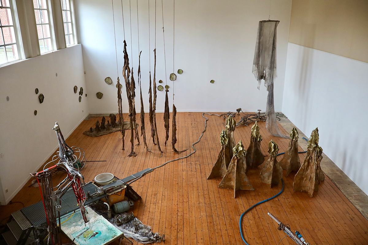 Maartje Korstanje (Goes, 1982) creates sculptures and installations, mostly from natural materials such as clay, cardboard and textiles. In her work, she explores how organic forms arise, decay and take shape again. Her sculptures seem to be the tangible end point of a growth process — fragile, yet vital — and resonate with thinking about the symbiocene, in which cooperation between humans and other life forms is central.
